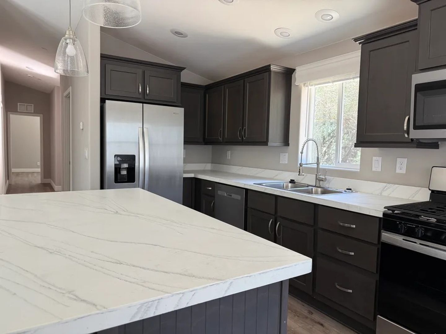 Welcome home to this beautifully crafted, spacious 1200 sq, new 3-bedroom, 2-bath mobile home nestled in a quiet, secluded area with serene open nature views. Enjoy modern living with brand new appliances, sleek laminate wood flooring, and a layout designed for comfort and functionality.